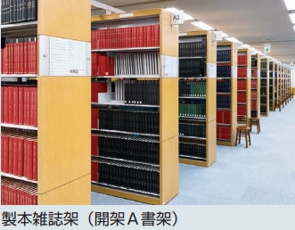雑誌は、当年度分はピジョンボックス、バックナンバーは製本されて製本雑誌架に配架されています。