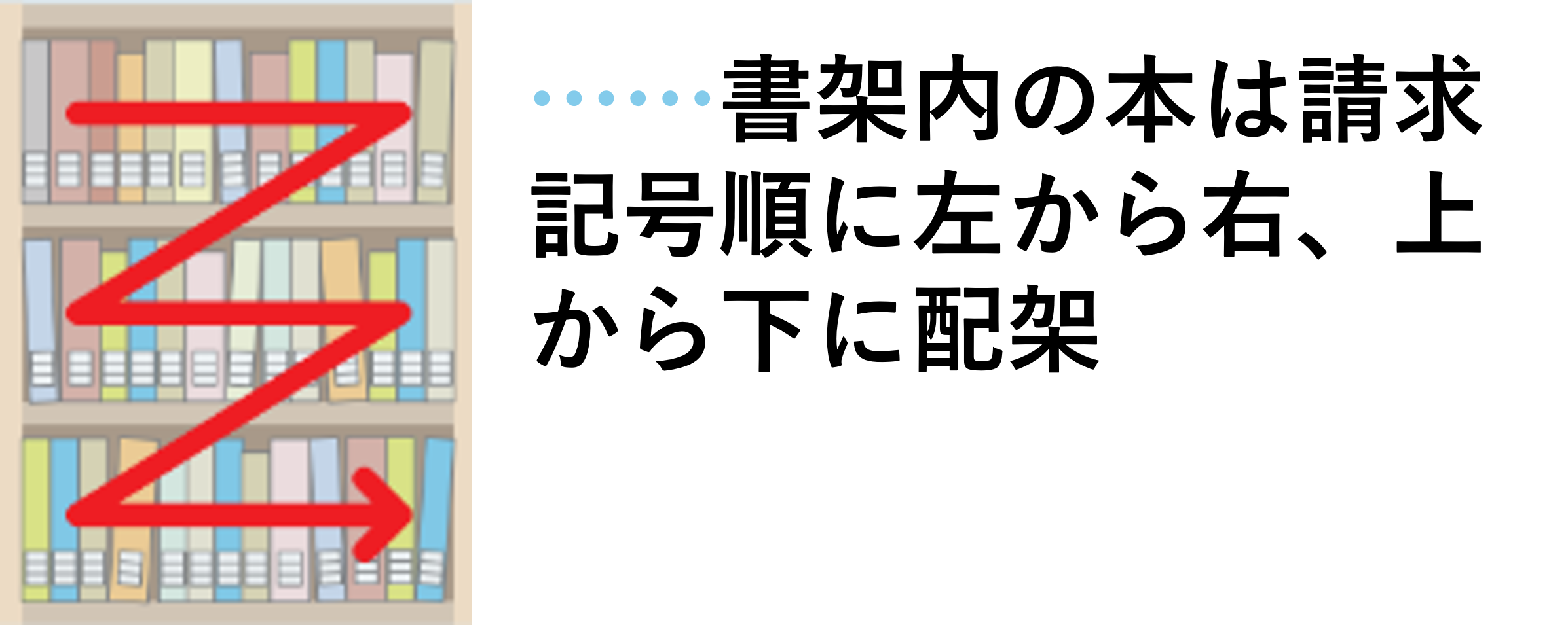 ● 本の背に「禁帯出」の赤色のシールが貼ってある資料=参考図書(辞書類含む)、教科書指定図書等